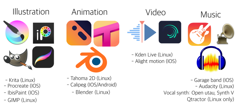 Hii!! I am a 15 year old who is passionate about my hobbies. One of the things I love is creative software on Linux, and the idea of FOSS. Why did I decide to go FOSS (mostly)? I decided to go mostly FOSS in late 2023 after I discovered that most softwares have a questionable privacy policy which give THEM rights to YOUR work. (Adobe for example). When you use FOSS, not only are you contributing to the community, you get freedom to do whatever you want with it. In return, you get more customization on how you want the programs to work enhancing the workflow.I hope that I can remove negative stereotypes about Linux and FOSS not being a viable option for creatives through my work while also making it more accessible to more people. ^^